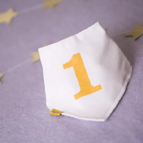My first birthday gold bib - blue - Babyboo