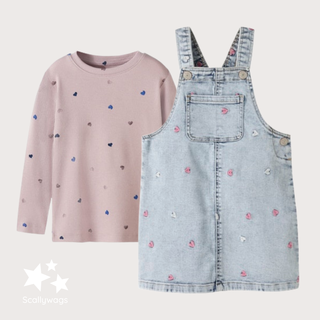 - Denim pinafore outfit with long sleeve top