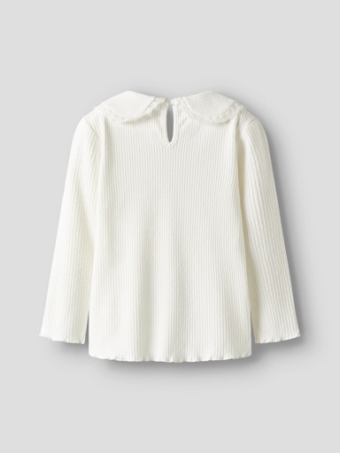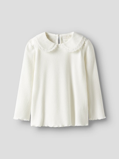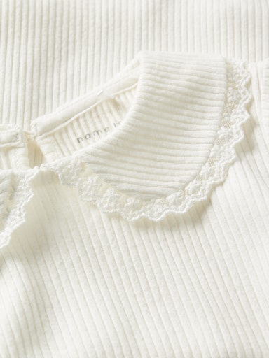 • White ribbed top with lace edged collar